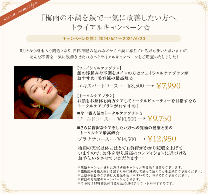 「梅雨の不調を鍼で一気に改善したい方へ」トライアルキャンペーン☆