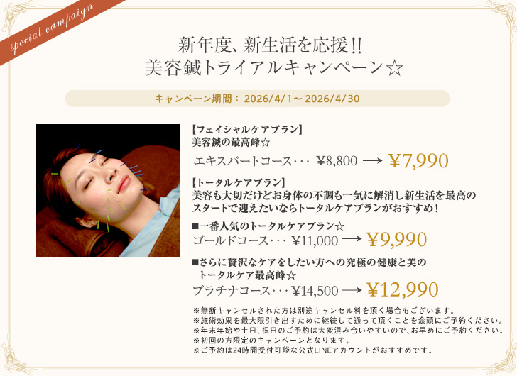 新年度、新生活を応援!!美容鍼トライアルキャンペーン☆